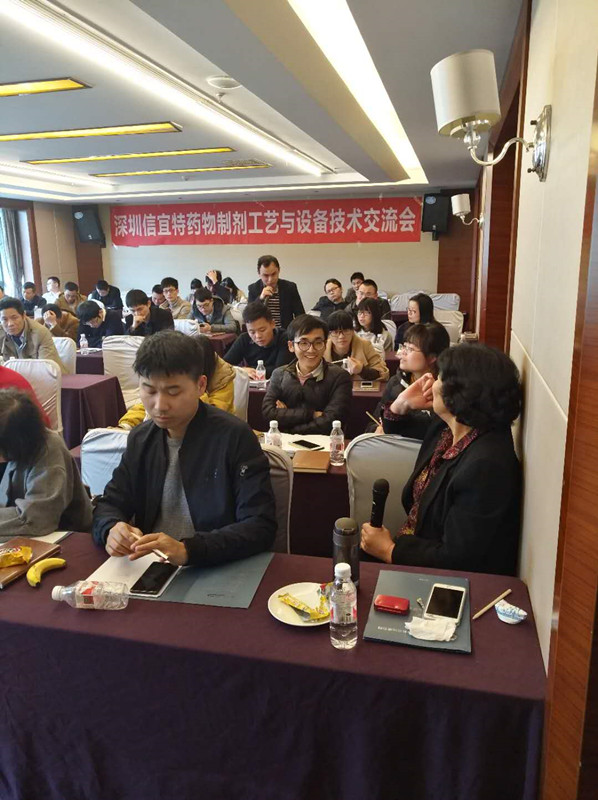 在此次交流會上,崔教授分享了題為《固體制劑的制備技術》和《難溶性藥物固體制劑的研究策略》的專題演講,我們信宜特作為專業的設備研發和生產企業,從設備原理角度分析了在研發和生產過程中出現問題的原因以及解決方案,同時也為廣大用戶設備選型提供了一定的依據。在交流會的最后,大家針對講座疑問和研發生產過程遇到的困難進行了交流和討論,現場氣氛十分活躍,崔教授也無私的分享了自己的研發經驗,大家都收獲滿滿。